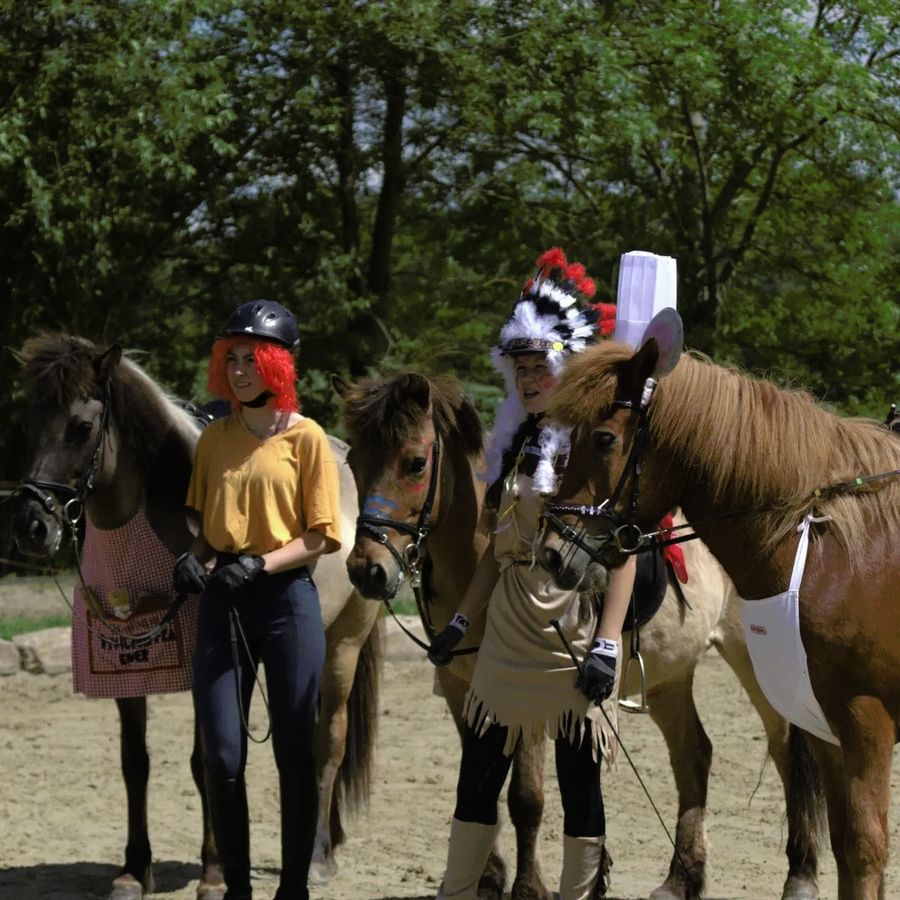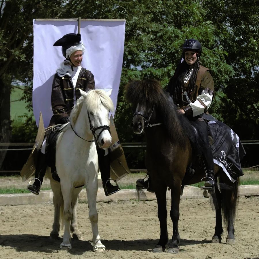Neben einigen Sportprüfungen des Qualitags (T8-T5, D6, V5, V3) füllten verschiedenste Hestadagar-Wettbewerbe das Tagesprogramm, die Zuschauerbänke waren daher stets gut gefüllt. Vom Trail für die kleinsten Reiter, über Gangprüfungen bis hin zur Bodenarbeitsaufgabe oder dem Fahnenrennen gab es für jede Altersklasse den passenden Wettbewerb. Ein cooles Highlight war wie so oft der 12 Uhr - Tölt, bei dem dieses Jahr 5 toll kostümierte Reiter-Pferd-Paare um die Ovalbahn flitzten! Nicht nur Einsteller und Reitschüler vom Hof waren vertreten, sondern auch ein paar Teilnehmer von auswärts gingen an den Start. Auch ein heftiger Schauer am Nachmittag konnte uns nicht aufhalten- an dieser Stelle noch einmal Respekt an alle hardcore-Reiter, die klatschnass toll geritten sind!