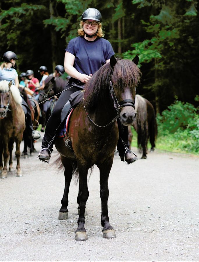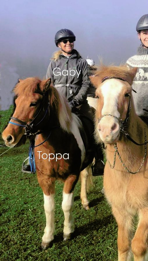 - Toppa, jetzt 15 Jahre, ist im Tölt sehr bequem, sie geht auch sehr gerne in großen Gruppen.