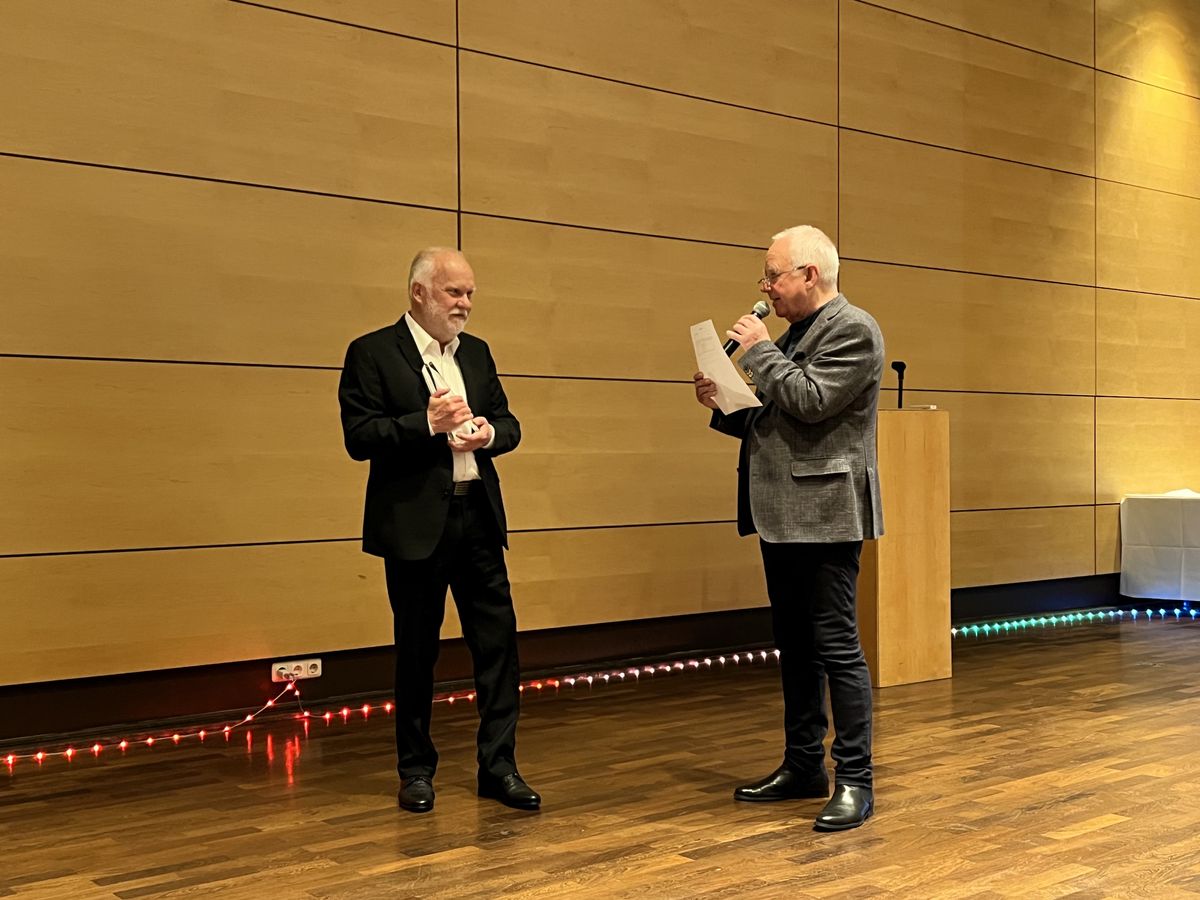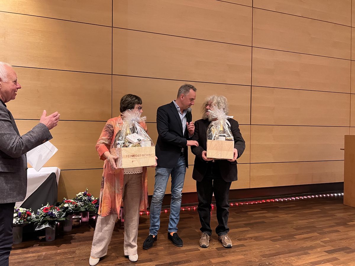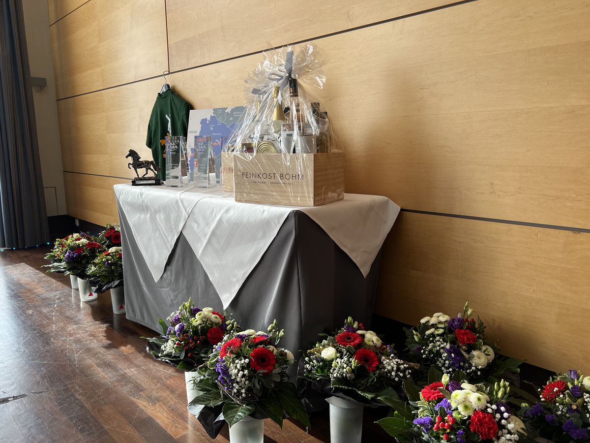 Frank Füchtenschnieder erhielt eine ganz besondere Auszeichnung. Er bekam die IPZV Ehrennadel Gold für sein jahrzehntelanges Engagement im IPZV-Bundesverband und in der gesamten Islandpferdeszene. Horst Gerhold überreichte ihm die Ehrennadel und fand genau die richtigen Worte, um die letzten 40 Jahre von Frank Füchtenschnieders großartigen Einsatz für das Islandpferd in Deutschland zu beschreiben. „[…] Hast du einen Sohn, dann will der Pferde. Hast du Pferde, dann brauchst du einen Hof. Hast du Hof und Pferde, dann brauchst du Zubehör. Gibt’s kein Zubehör, dann hast du ein Problem. Willst du kein Problem, dann eröffne einen Laden […]“. Frank Füchtenschnieder, ein Unikum, jemand der eine Fülle von Dingen für den IPZV – ungeachtet, ob Dachverband, Landesverband, Ortsverein oder für die Mitglieder – getan hat. Auf vielen IPZV-Veranstaltungen stellte Frank seine wegweisenden Ideen fürs Zubehör von Pferd und Reiter dar und ebenfalls unvergessen, in letzter Zeit, seine Hilfsfahrten ins Ahrtal und in die Ukraine.