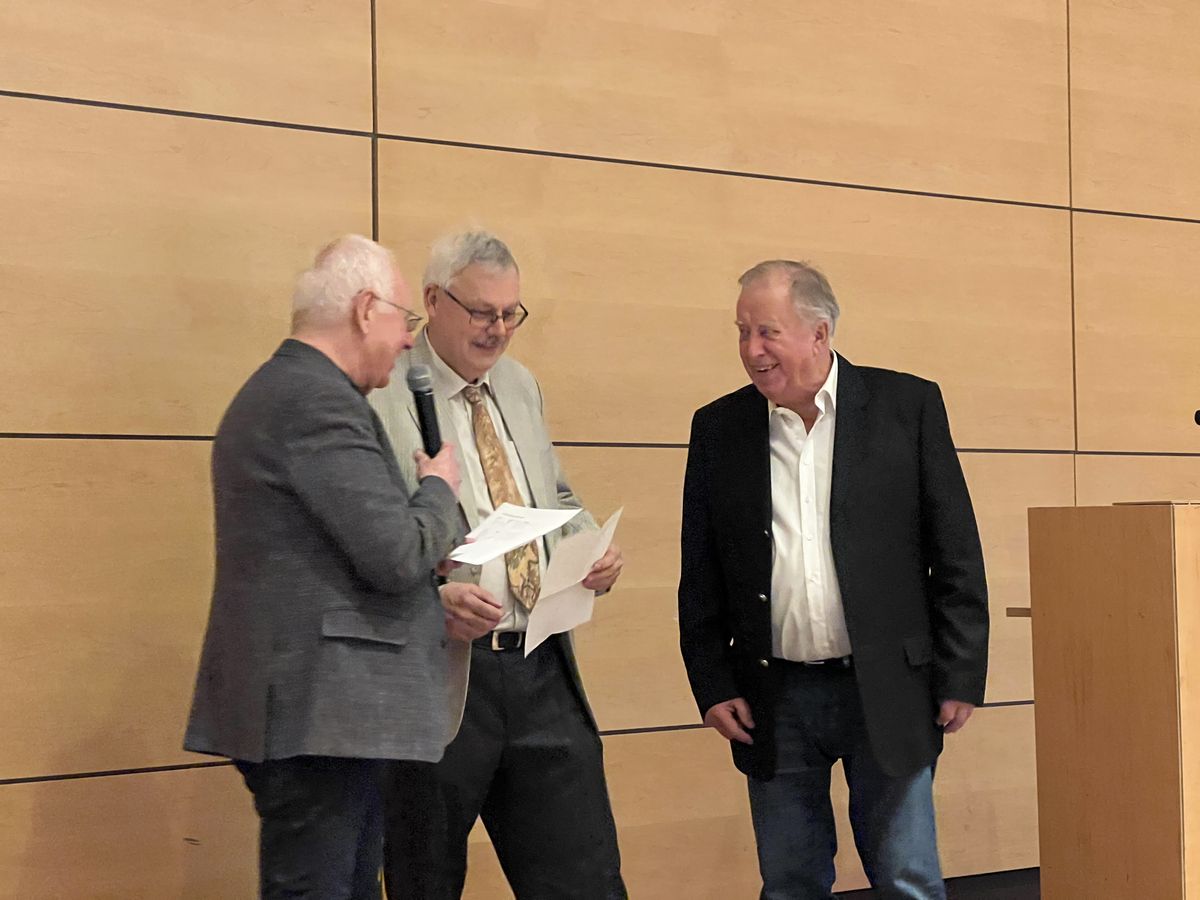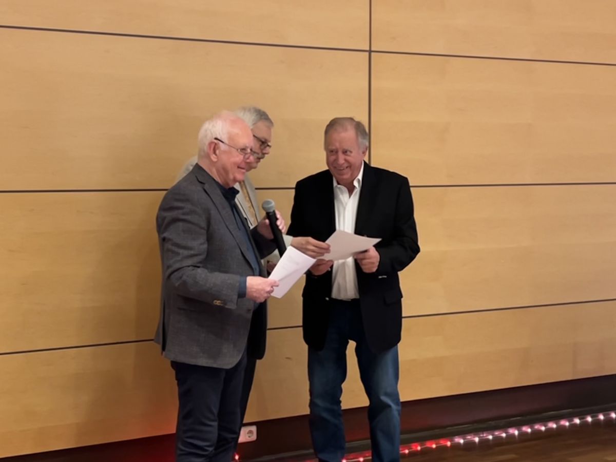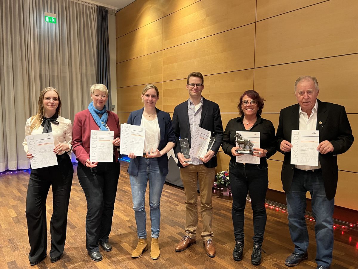 Frank Füchtenschnieder erhielt eine ganz besondere Auszeichnung. Er bekam die IPZV Ehrennadel Gold für sein jahrzehntelanges Engagement im IPZV-Bundesverband und in der gesamten Islandpferdeszene. Horst Gerhold überreichte ihm die Ehrennadel und fand genau die richtigen Worte, um die letzten 40 Jahre von Frank Füchtenschnieders großartigen Einsatz für das Islandpferd in Deutschland zu beschreiben. „[…] Hast du einen Sohn, dann will der Pferde. Hast du Pferde, dann brauchst du einen Hof. Hast du Hof und Pferde, dann brauchst du Zubehör. Gibt’s kein Zubehör, dann hast du ein Problem. Willst du kein Problem, dann eröffne einen Laden […]“. Frank Füchtenschnieder, ein Unikum, jemand der eine Fülle von Dingen für den IPZV – ungeachtet, ob Dachverband, Landesverband, Ortsverein oder für die Mitglieder – getan hat. Auf vielen IPZV-Veranstaltungen stellte Frank seine wegweisenden Ideen fürs Zubehör von Pferd und Reiter dar und ebenfalls unvergessen, in letzter Zeit, seine Hilfsfahrten ins Ahrtal und in die Ukraine.