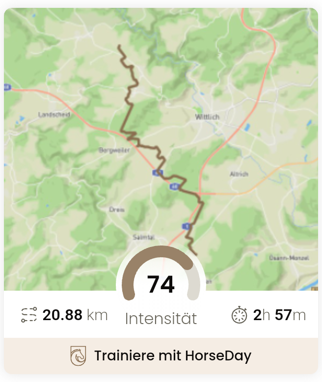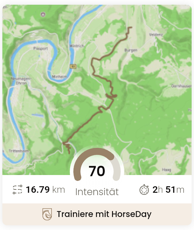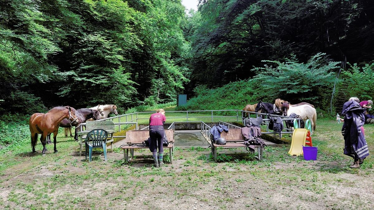 Am 05.07. (Tag 12) ging es vom Minderlittgen über Felder und durch Wälder bis nach Klausen. Insgesamt wurden 20,88 km in knapp 3 Stunden geritten. Am Tag danach (Etappe 13) wurde dann der Stafettenstab von Marion Heindorf (Landesverband Rheinland) an Dagmar Schäfer (Landesverband Rheinland-Pfalz-Saarland) übergeben. Dagmar Schäfer wird nun für die nächsten 12 Etappen die Rittführung übernehmen. Die Etappe 14 ging von der Mosel in Richtung Hunsrück und erforderte gute Kondition. Insgesamt wurden 16,79 km zurückgelegt.