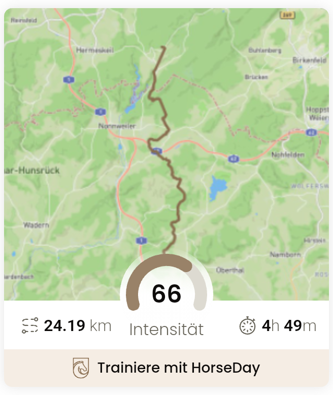 Am 08.07.2025 (Etappe 16) führte der Weg der Stafettenreiter*innen von Heidenberg durch schöne Wälder bis nach Züsch. Von dort ging es am 09.07.2025 weiter nach Theley. Insgesamt wurden bei der Etappe 16 24 km geritten.