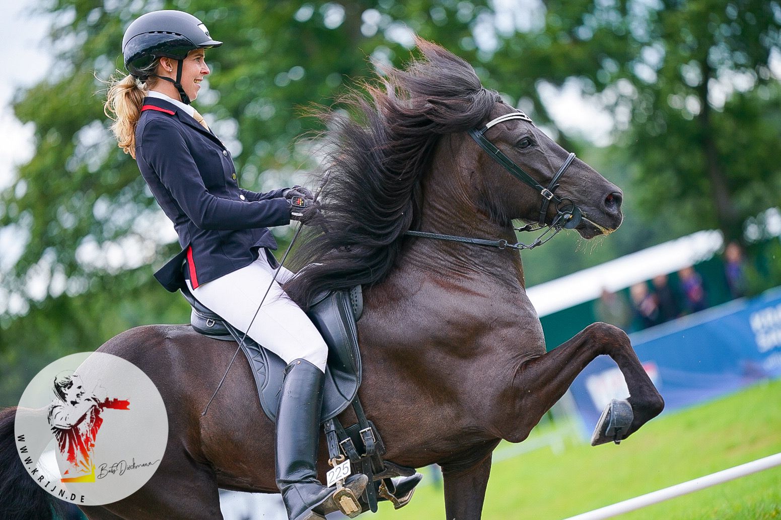 Der erste Tag stand ganz im Zeichen der Zuchtprüfung. In der Zucht findet in diesem Jahr erstmalig keine Gebäudebeurteilung auf der WM statt, die Pferde übernehmen die Exterieur-Note aus ihrer jeweiligen WM-Qualifikation und beginnen gleich mit dem ersten Durchgang der Reiteigenschaften. Als erste Starterin der diesjährigen WM stellte Frauke Schenzel die 5-jährige Rebekka vom Kronshof auf der Passbahn in Oirschot vor, bislang liegt das Paar auf Rang zwei. Auch in den anderen Prüfungen der jungen Pferde präsentierten sich weitere Pferde aus der Zucht des Kronshofs.