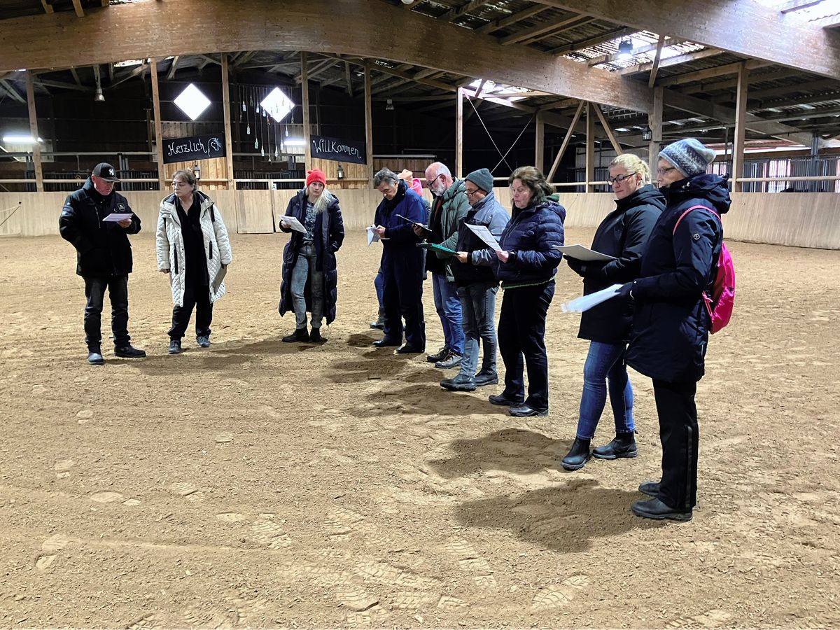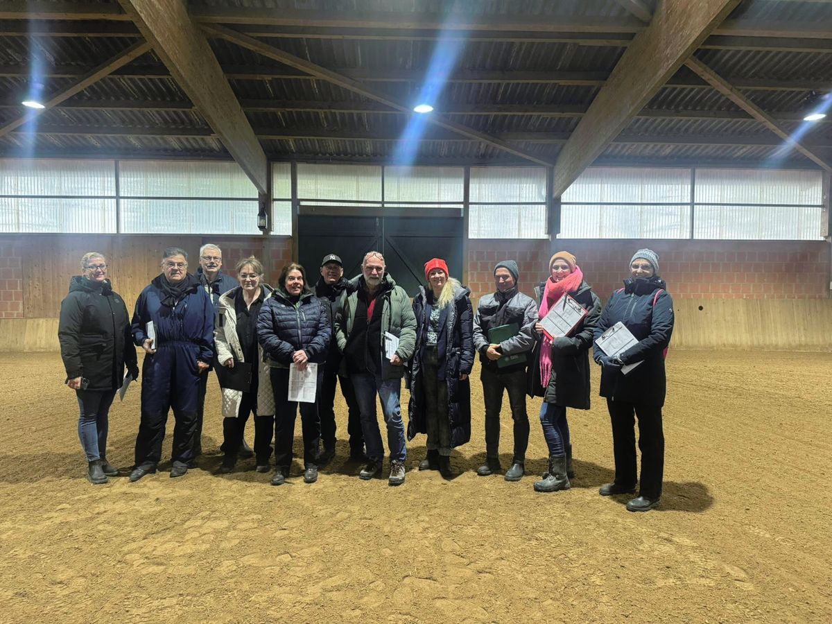 Zweiter Schwerpunkt auf der Materialrichterfortbildung war das internationale Fohlen- und Jungpferde-Beurteilungssystem. Dieses basiert auf unserem Fohlensystem, jedoch bei den Merkmalen teils deutlich abgespeckt (siehe Richtbogen) und anstelle von Noten sind Punkte hinterlegt. Nach Addition der Punkte erfolgt ein Ranking. Bislang war dieses FEIF-System nur internationalen Materialrichtern vorbehalten, nach langen und intensiven Gesprächen öffnet sich die FEIF und bietet auch nationalen Materialrichtern an dieses System richten zu dürfen, sofern diese eine Schulung abgelegt haben. Auf dem Rappenhof wurden jetzt testweise einige Fohlen und ein Jungpferd gerichtet, die Handhabung fiel unseren Richtern nicht schwer. Alle deutschen Materialrichter zeigen Interesse im kommenden Jahr dies System bei Fohlen zu testen, sofern Veranstaltungen hierzu ausgeschrieben werden. Die Schulung auf dieses FEIF-System ist für den März terminiert. Eine Nutzung des FEIF-Systems ist 2025 bei Jungpferden ist noch nicht möglich, da zur Körung eine Beurteilung mit Noten vorgeschrieben ist. Hier wird die Zuchtleitung mit der FN und den Zuchtverbänden in Kontakt treten und die Züchter über die weitere Entwicklung informieren.